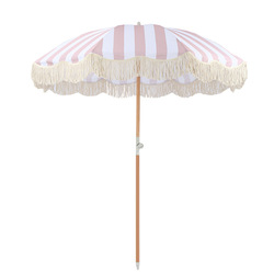 2024 all'ingrosso estate all'aperto Vintage rosa a righe bianche nappe pieghevoli in legno palo spiaggia ombrelloni ombrelloni con borsa per il trasporto